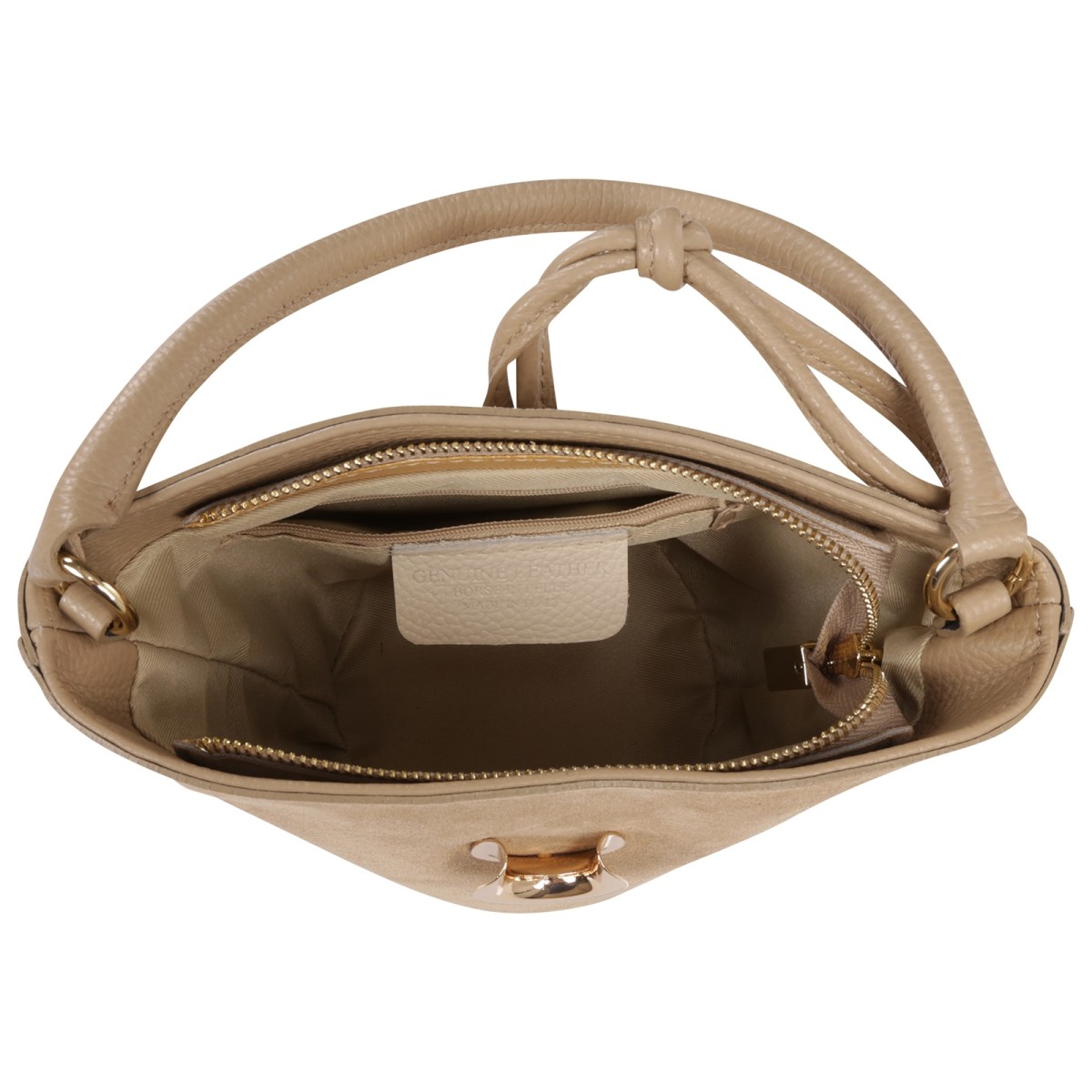 Diese trendige Damen Tasche von Toscanto aus der Toscanto Handbags Kollektion ist ein cooles Accessoire und ein echter Hingucker. Die taupe, beigee Tasche ist der ideale Begleiter für den eleganten Abend.Toscanto steht für hochwertige Lederarbeit und modisch designte Echtlederartikel aus Italien. Das verarbeiteten Leder unterliegt italienischen Qualitäts- und Herstellungsrichtlinien.