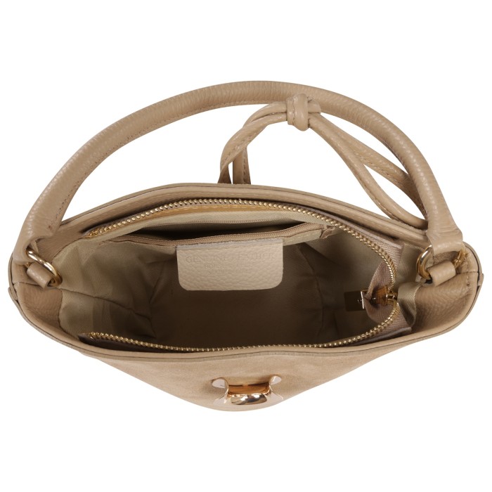 - Kurzbeschreibung: Handtasche in taupe, beige mit Reißverschluss, Knotenverschluss
