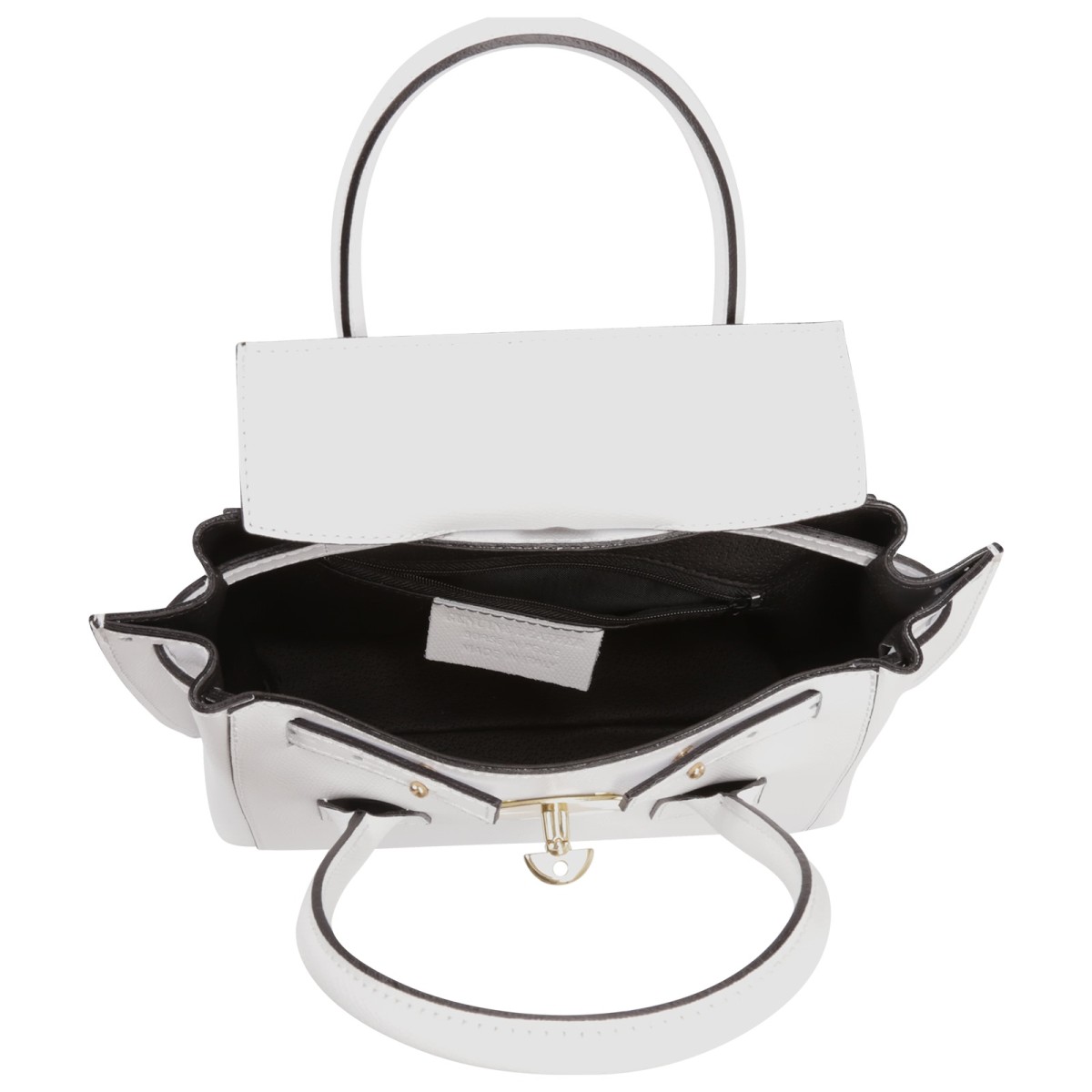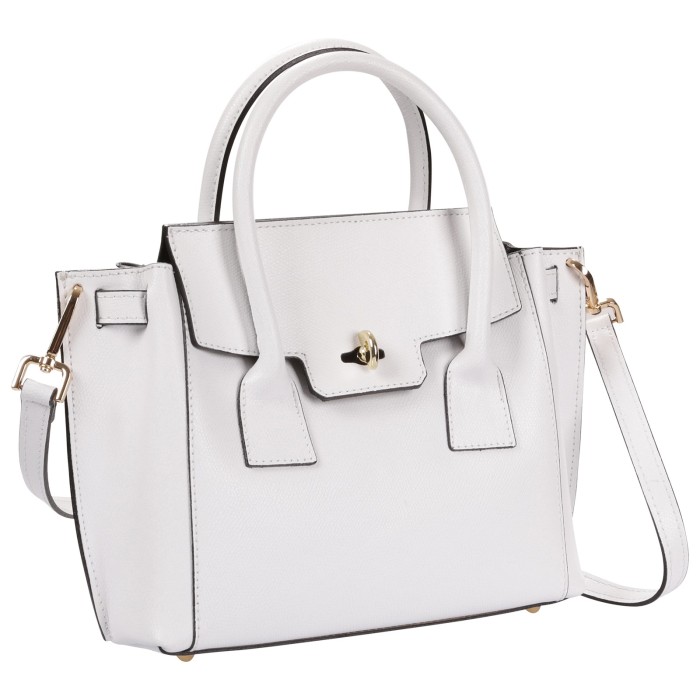 - Kurzbeschreibung: Handtasche in weiß mit Deckelklappe, Klippverschluss