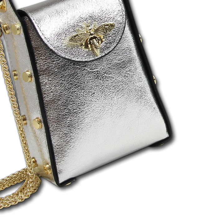Diese trendige Damen Tasche von Toscanto aus der Toscanto Handbags Kollektion ist ein cooles Accessoire und ein echter Hingucker. Die silber metallice Tasche ist der ideale Begleiter für den eleganten Abend.Toscanto steht für hochwertige Lederarbeit und modisch designte Echtlederartikel aus Italien. Das verarbeiteten Leder unterliegt italienischen Qualitäts- und Herstellungsrichtlinien.