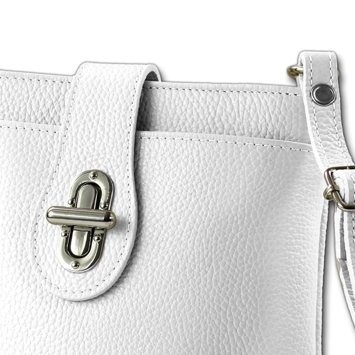 Diese trendige Damen Tasche von Toscanto aus der Toscanto Handbags Kollektion ist ein cooles Accessoire und ein echter Hingucker. Die weiße Tasche ist der ideale Begleiter für den eleganten Abend.Toscanto steht für hochwertige Lederarbeit und modisch designte Echtlederartikel aus Italien. Das verarbeiteten Leder unterliegt italienischen Qualitäts- und Herstellungsrichtlinien.