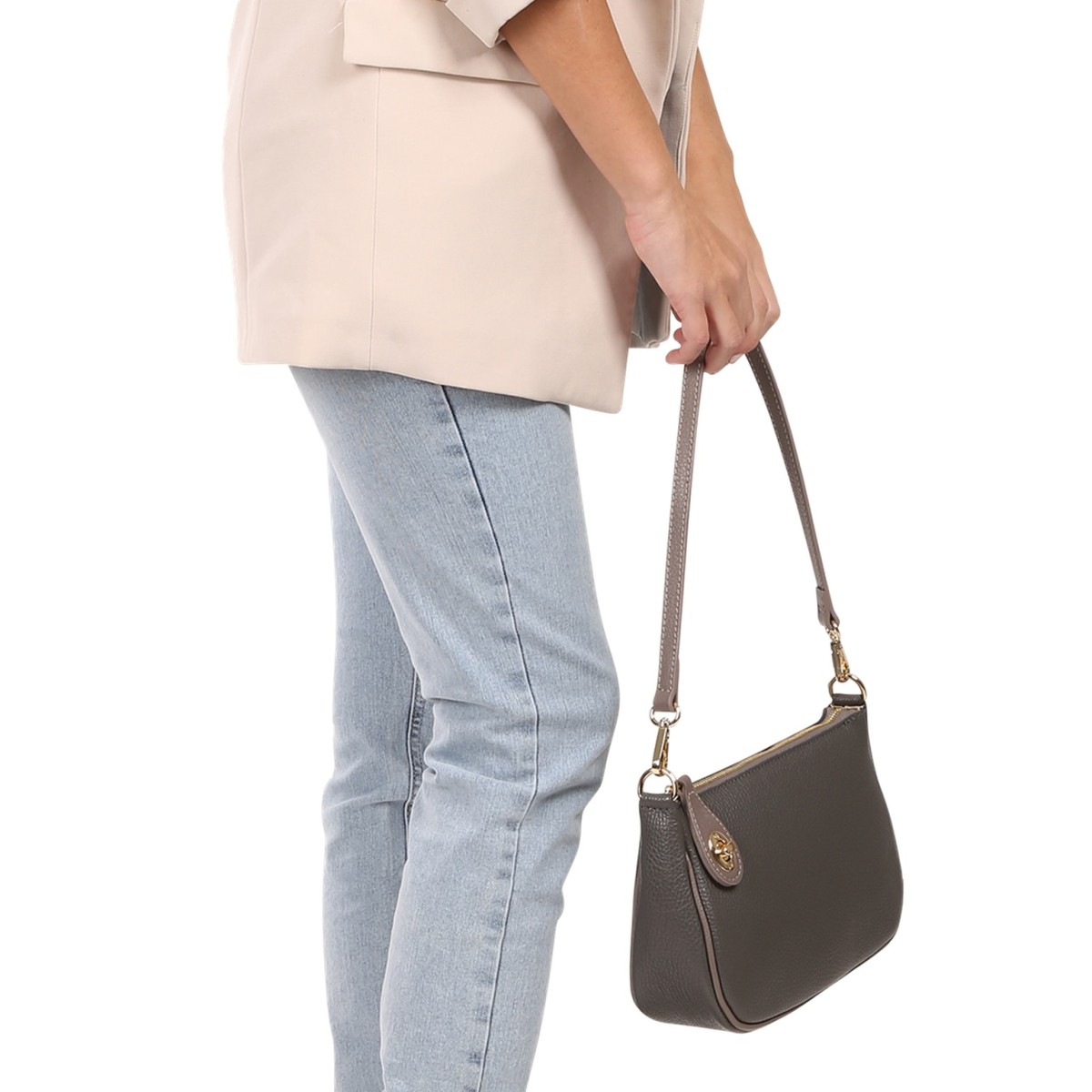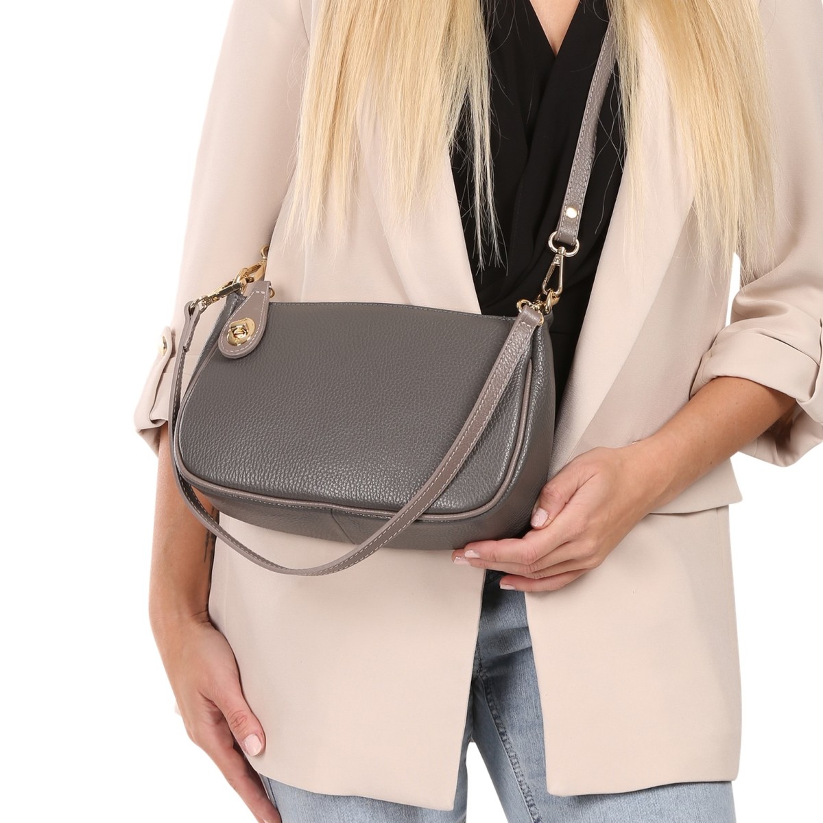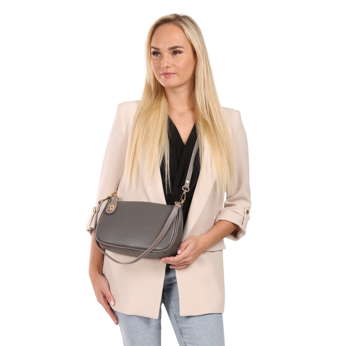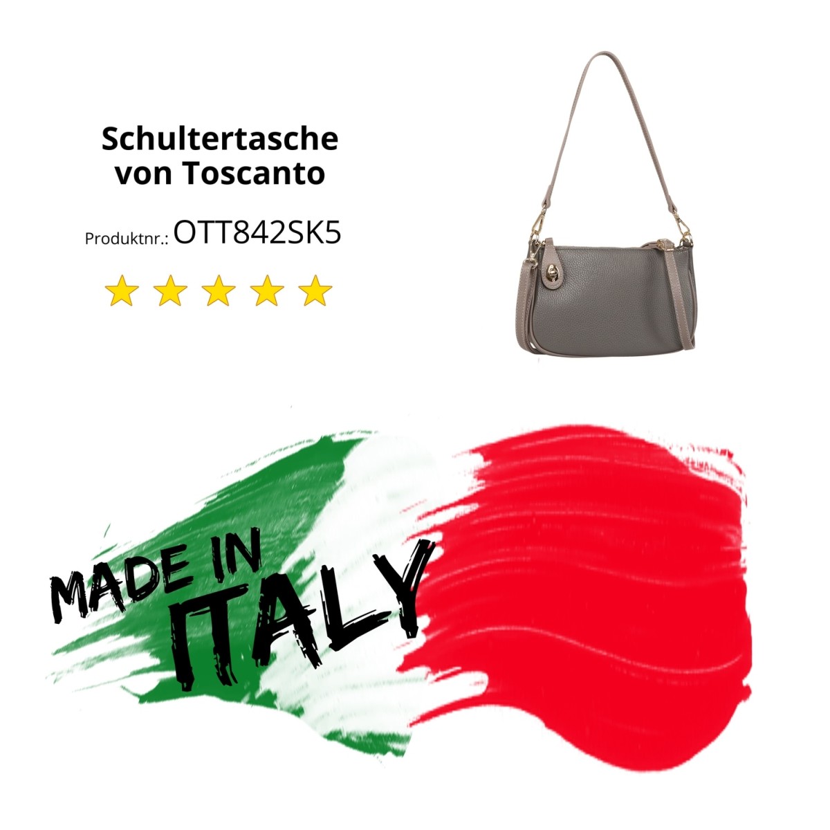 Diese trendige Damen Tasche von Toscanto aus der Toscanto Handbags Kollektion ist ein cooles Accessoire und ein echter Hingucker. Die graue Tasche ist der ideale Begleiter für den eleganten Abend.Toscanto steht für hochwertige Lederarbeit und modisch designte Echtlederartikel aus Italien. Das verarbeiteten Leder unterliegt italienischen Qualitäts- und Herstellungsrichtlinien.