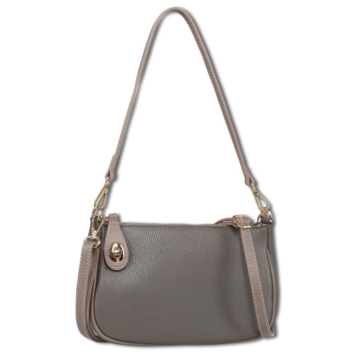 - Kurzbeschreibung: Schultertasche in grau mit Reißverschluss, Steckverschluss