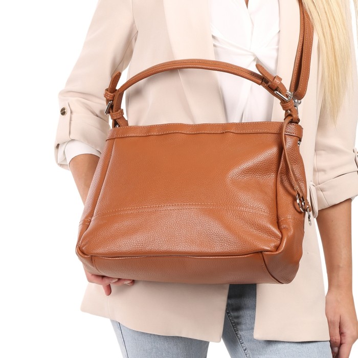 Toscanto Schultertasche aus Leder in hellbraun