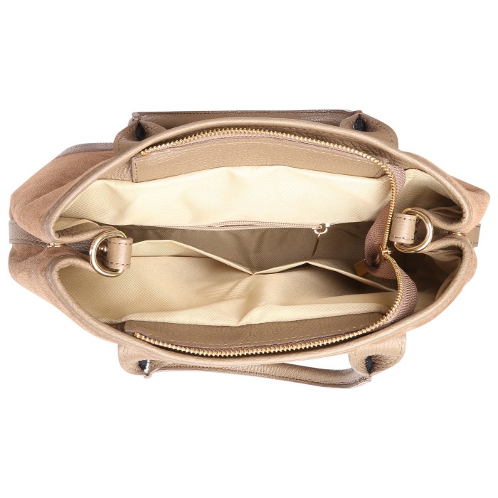 Toscanto Schultertasche aus Leder in taupe, dunkelgrau