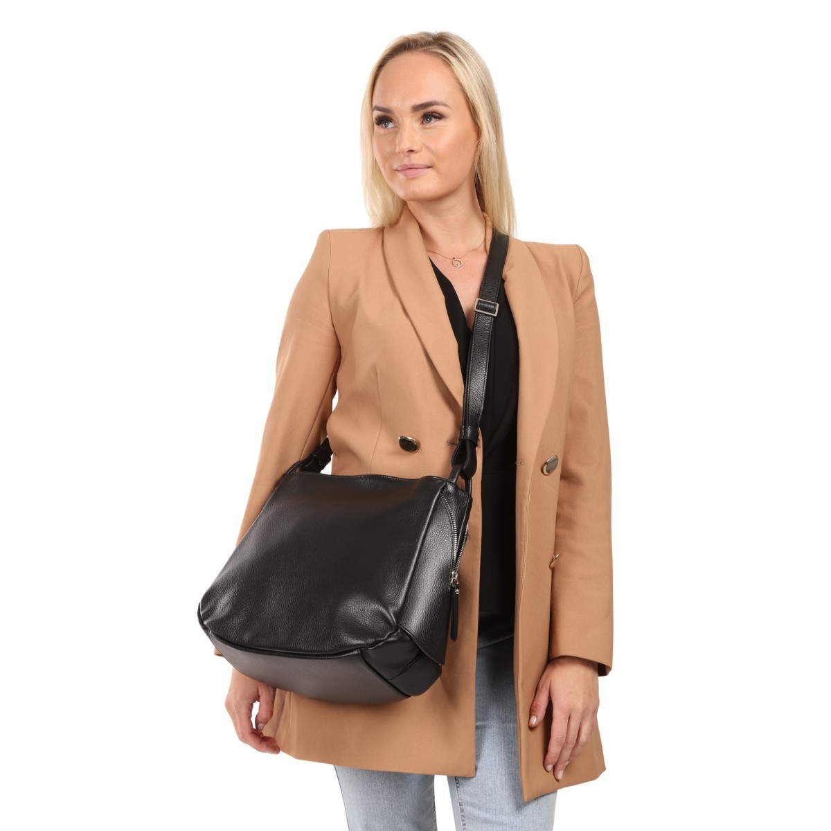 Diese trendige Damen Tasche von Toscanto aus der Toscanto Handbags Kollektion ist ein cooles Accessoire und ein echter Hingucker. Die schwarze Tasche ist der ideale Begleiter für den eleganten Abend.Toscanto steht für hochwertige Lederarbeit und modisch designte Echtlederartikel aus Italien. Das verarbeiteten Leder unterliegt italienischen Qualitäts- und Herstellungsrichtlinien.