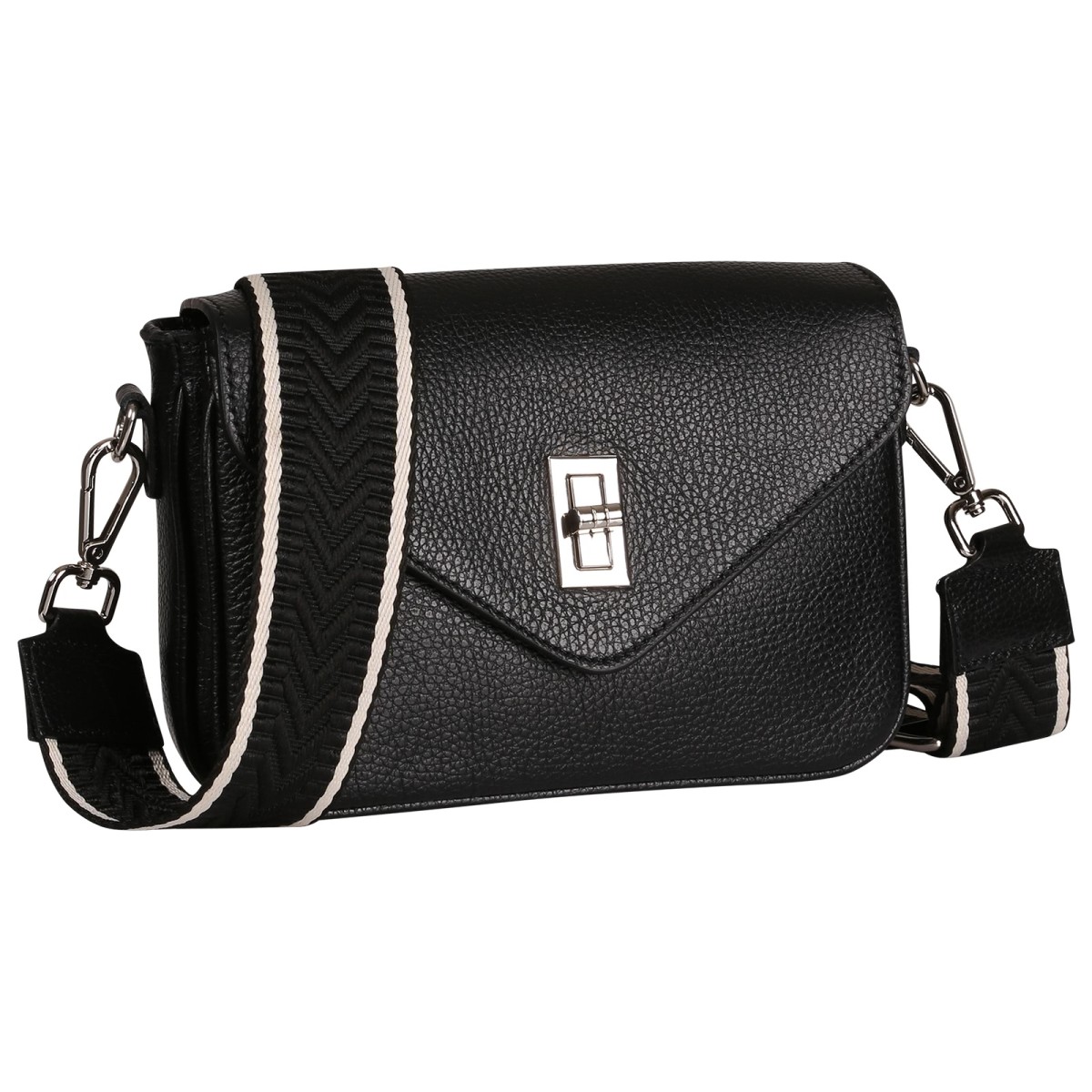 - Kurzbeschreibung: Umhängetasche in schwarz mit Klippverschluss, Reißverschluss