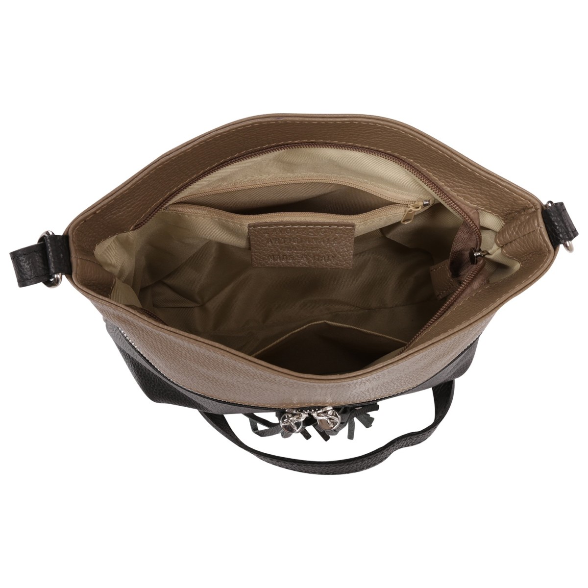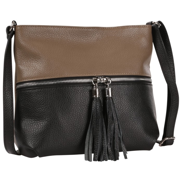 Toscanto Umhängetasche aus Leder in taupe, schwarz