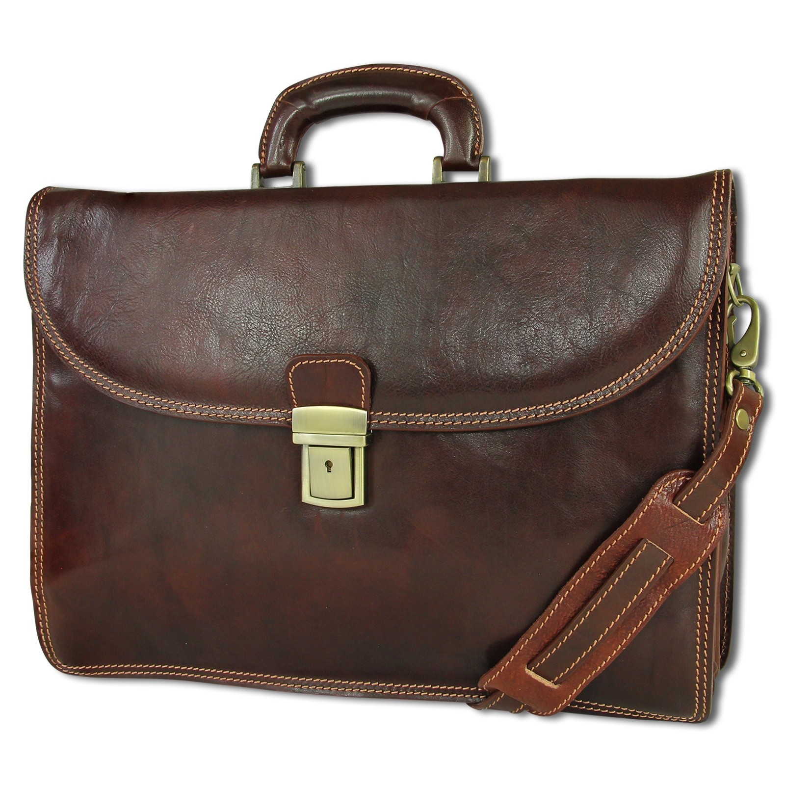 Toscanto Aktentasche, Businesstasche, Umhängetasche aus Leder in braun