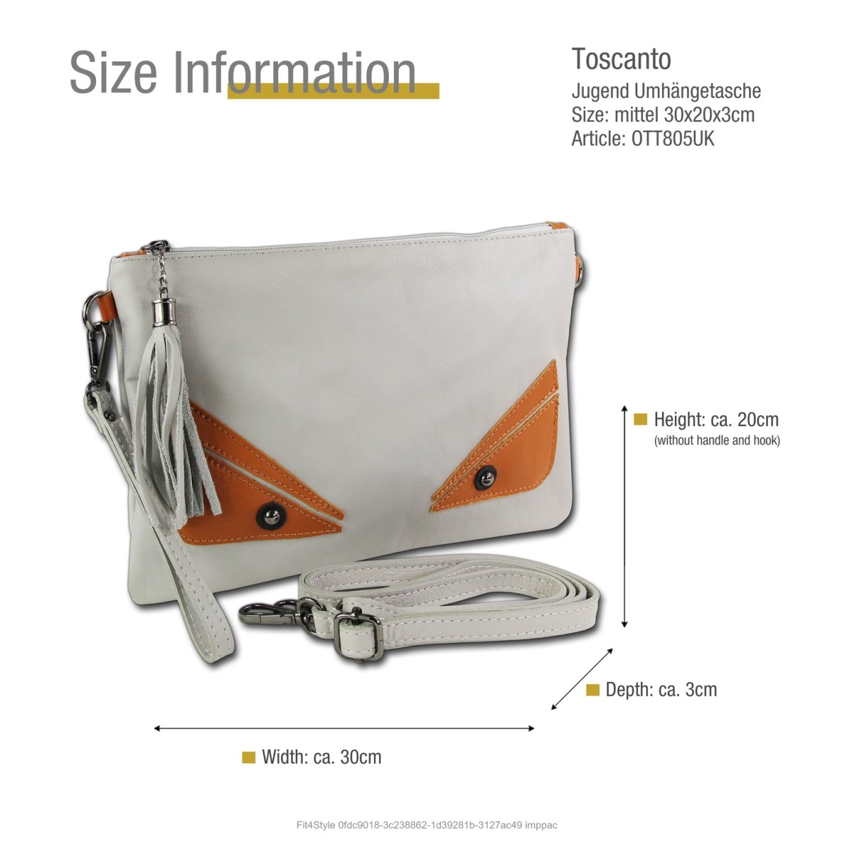 Diese trendige Jugend, Damen Tasche von Toscanto aus der Toscanto Handbags Kollektion ist ein cooles Accessoire und ein echter Hingucker. Die grau, braune Tasche ist der ideale Begleiter für den eleganten Abend.Toscanto steht für hochwertige Lederarbeit und modisch designte Echtlederartikel aus Italien. Das verarbeiteten Leder unterliegt italienischen Qualitäts- und Herstellungsrichtlinien.