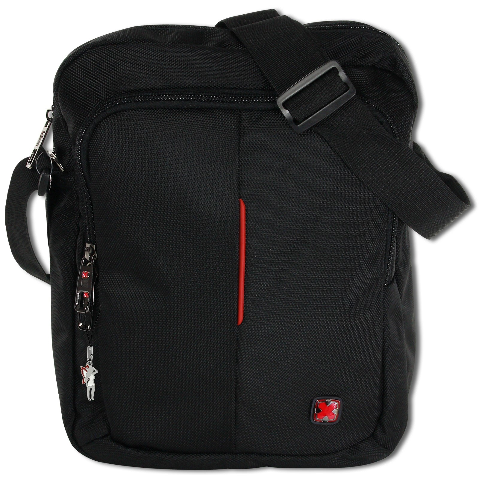 Crossbody Umhängetasche aus strapazierfähigem Material als praktischer Begleiter für Business und Freizeit. Ein unverzichtbares Accessoires mit Organizer und Tabletfach. Dank der Schlaufe auf der Rückseite lässt sie sich auf Reisen an einem Trolley befestigen. Im Lieferumfang enthalten ist ein kleiner Fee-Anhänger, der am Produkt oder auch als Handyanhänger getragen werden kann.- besondere Eigenschaften
