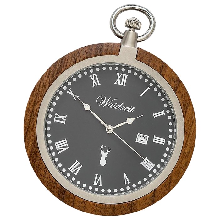 - Kurzbeschreibung: Waidzeit Herren Taschenuhr Edelstahl Walnuß dunkelbraun mit Uhrenkette UWATR01