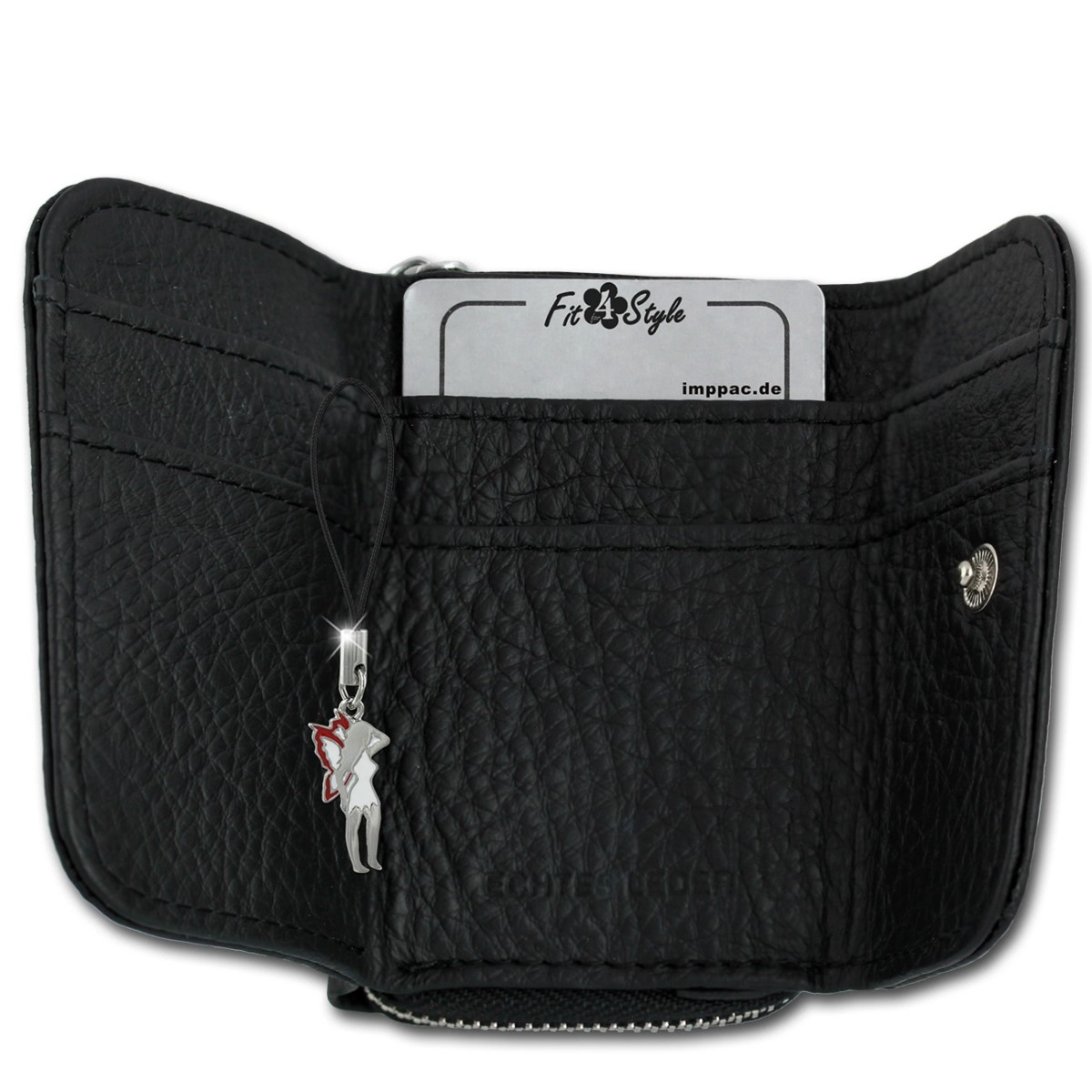 Praktisches, kleines Portemonnaie aus Antikleder mit einem zweigeteilten Reißverschlussfach für Kleingeld. Im Lieferumfang enthalten ist ein kleiner Fee-Anhänger, der am Produkt oder auch als Handyanhänger getragen werden kann.- besondere Eigenschaften