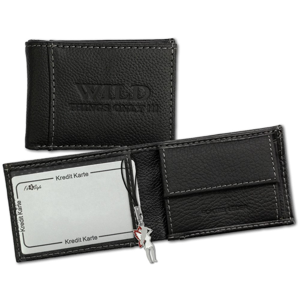 Wild Things only! Geldbörse aus echtem Leder mit Ziernähten und Schriftzug. Münzfach mit Druckknopf. Sehr kleine Börse, passt gut in die Hosentasche. Zusätzlich ist es mit einem RFID Blocker ausgestattet, so bietet sie Sicherheit für unerlaubtes auslesen Ihrer Daten. Im Lieferumfang enthalten ist ein kleiner Fee-Anhänger, der am Produkt oder auch als Handyanhänger getragen werden kann.- besondere Eigenschaften